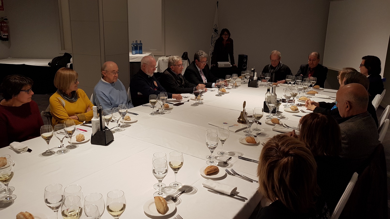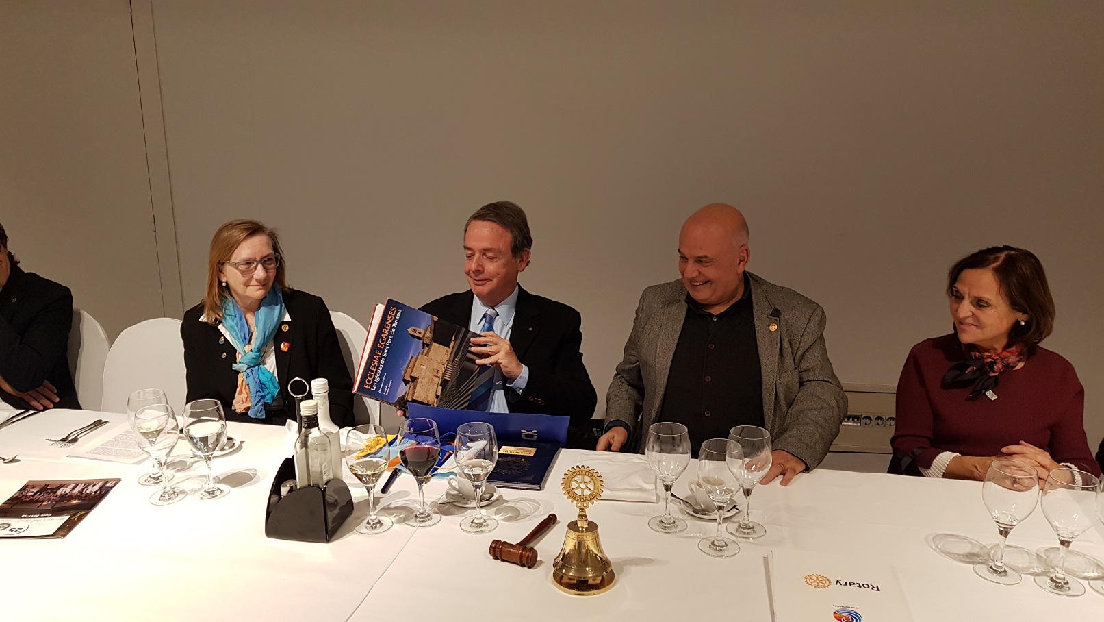 També ha agraït la visita privada que ha pogut fer a la Seu d’Egara de la que en tenia un especial desig de poder visitar. En la part de l’intercanvi d’obsequis el president del Rotary de Terrassa Sr. Domènec Ferran li ha lliurat un exemplar del llibre de la Seu d’Egara que ell ha agraït especialment. Per la seva part ens ha lliurat el banderí amb el lema rotari d’aquest curs i em finalitzat la trobada amb una fotografia de grup.