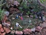 Destaquem que en la seva construcció només emprem materials dels rodals i alguna branca, sense fer malbé cap planta (les branques utilitzades són de les que creixen als vorals del camí i encapçar-les ajude a fer més practicable el camí a la font de la Portella que hem trobat malmesa per culpa d’una caiguda de roques). Al costat hi hem deixat una llibreta perquè tots el que el visiteu hi pugueu deixar el vostre missatge.