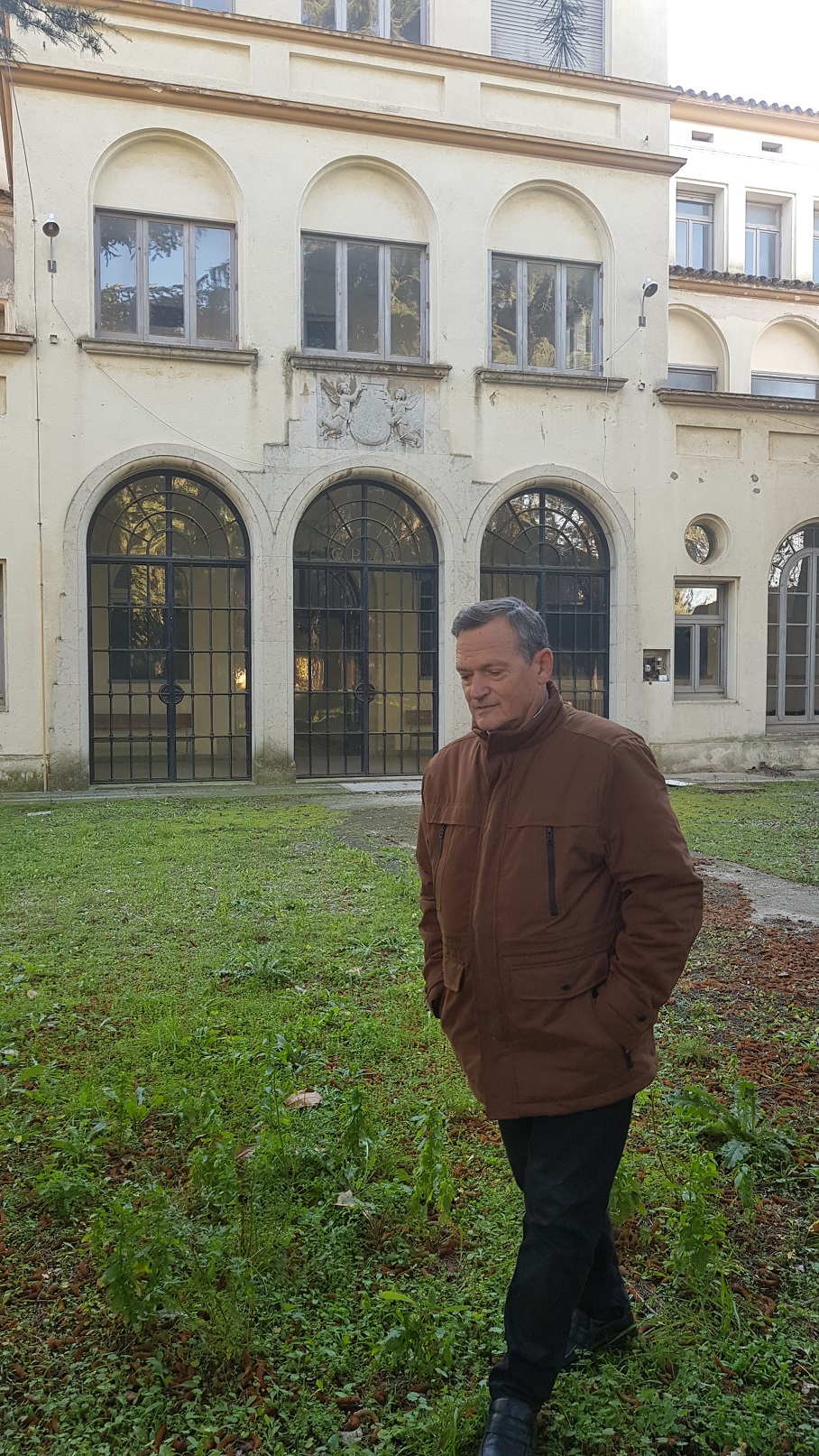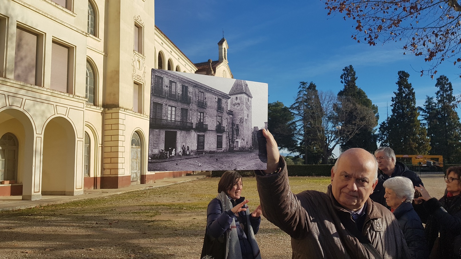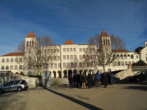 Hem començat observant la silueta de l’edifici des de l’exterior i allí em pogut comprovar amb la visualització de imatges antigues l’evolució constructiva que va transformar l’antic mas (del S. XIII) en l’edifici sanatorial que vull podem veure i que és obra (1911) de l’arquitecte Josep Domènech i Mansana.