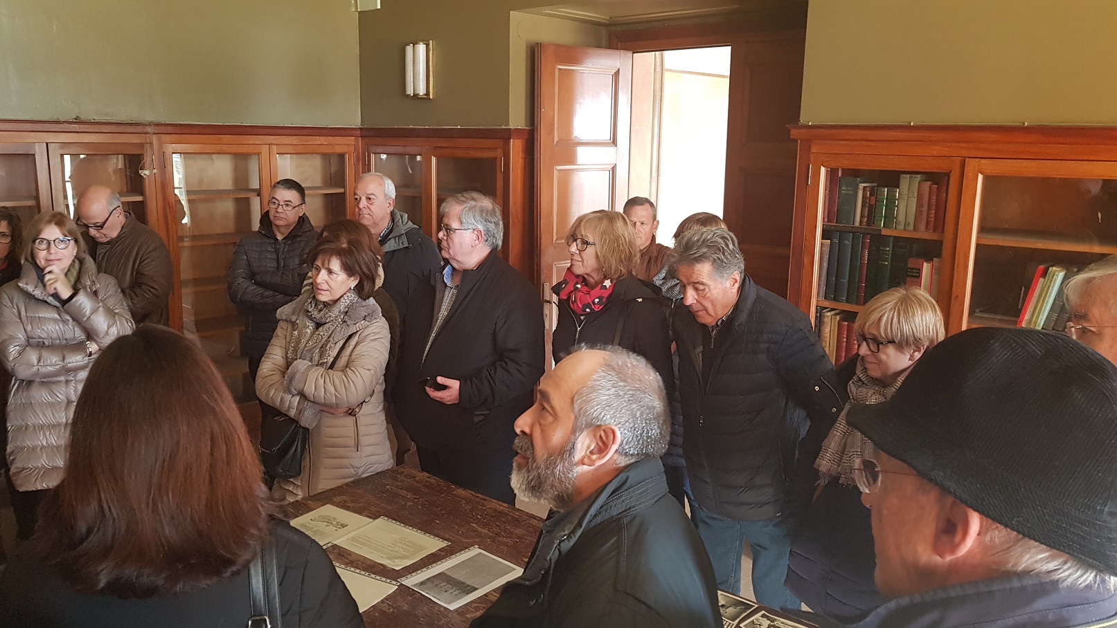 Des del vestíbul hem visitat la biblioteca que conserva encara els armaris originals i després hem entrat en l’accés a l’escala principal on es pot observar una gran lluerna. Hem seguit passant per pasillos diversos fins a l’antiga fusteria que es va adaptar per fer-ne una residencia per gent gran i que ara es fa servir com a espai de rodatges, al igual que moltes altres indrets de l’edifici. Aquesta residencia va ser ocupada per darrera vegada l’any 1992 ja que s’hi van allotjar atletes australians que van venir per les olimpíades de Barcelona.