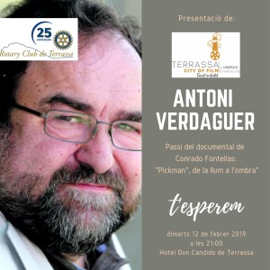 Dimarts 12 de febrer , al Rotary de Terrassa, tenim com a convidat a l’Antoni Verdaguer, que ens explicarà el Projecte Terrassa City of Film.