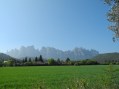 Sortint de l’església hem agafat un camí de terra que surt a mà esquerra i que s’endinsa cap a una zona de bonics camps cultivats i on les vistes de les agulles de Montserrat ens deixen bocabadats. El camí et porta a un de més ample que cal agafar a mà esquerra i que continua fins arribar prop d’una casa de pagès a la que no cal arribar ja que ens desviem per un trencall a mà esquerra que ràpidament baixa cap a la riera del Carner.