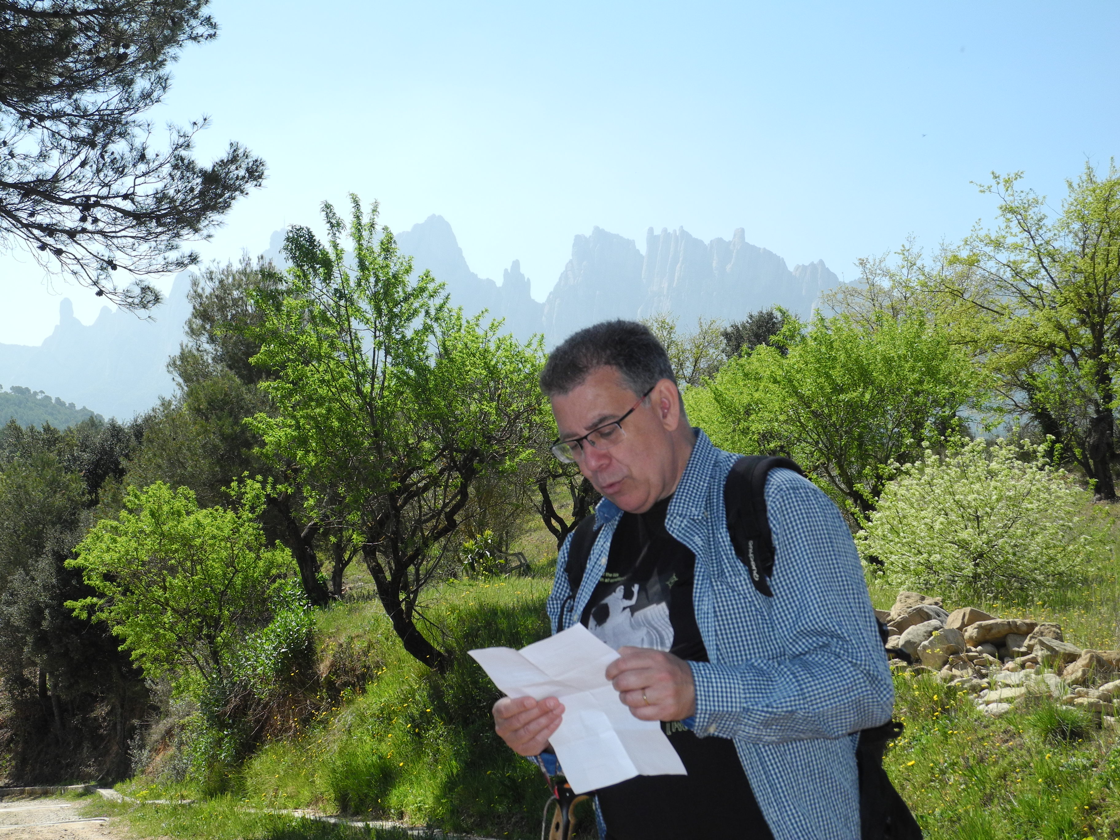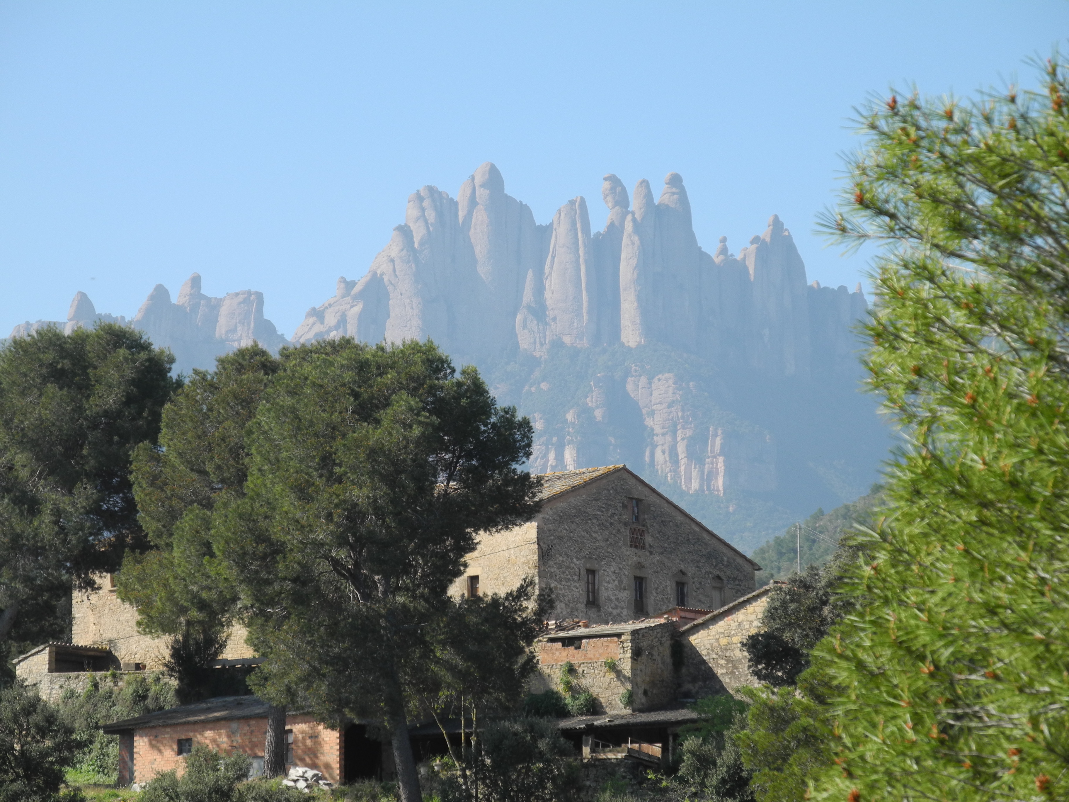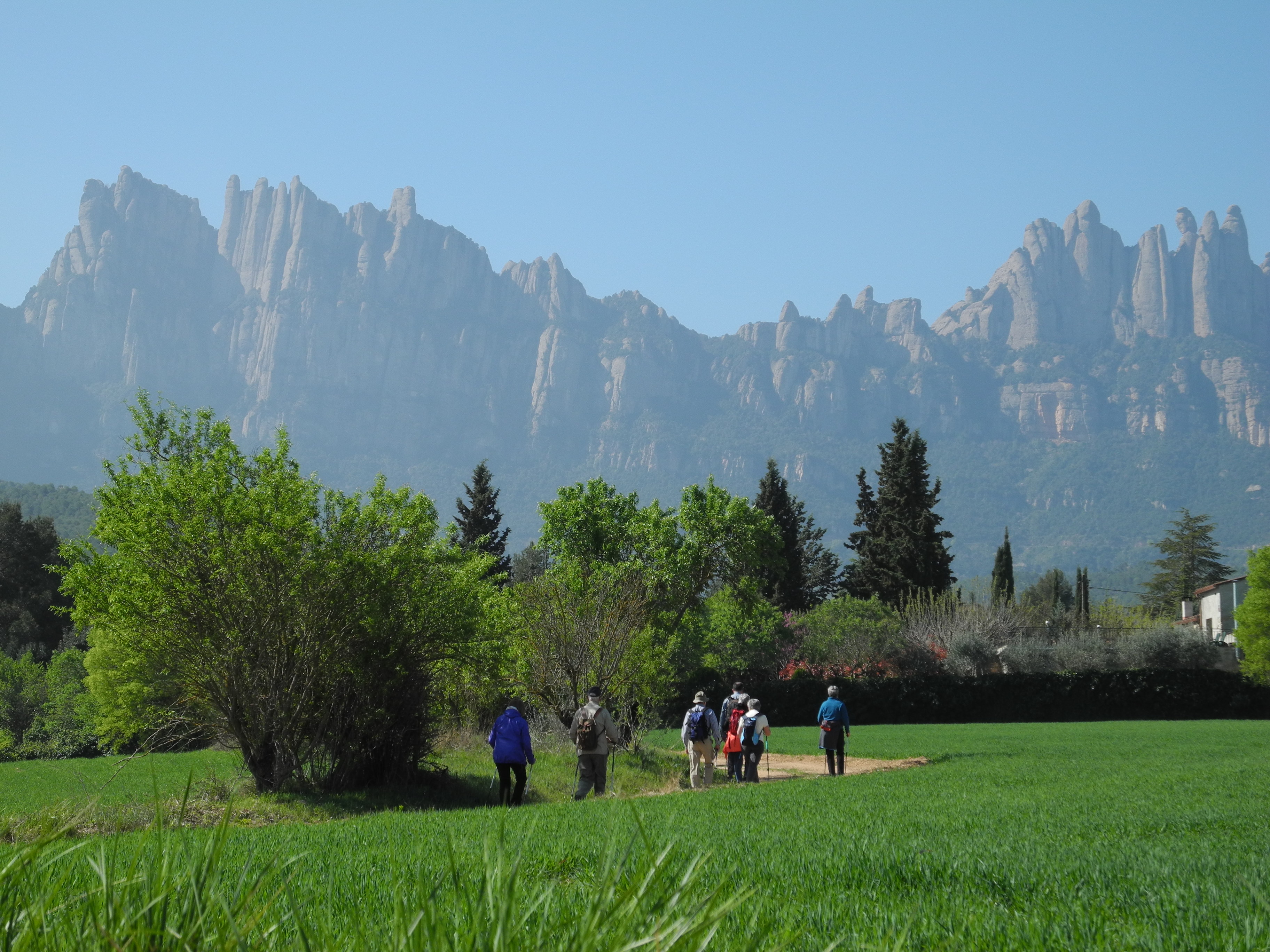 Sortint de l’església hem agafat un camí de terra que surt a mà esquerra i que s’endinsa cap a una zona de bonics camps cultivats i on les vistes de les agulles de Montserrat ens deixen bocabadats. El camí et porta a un de més ample que cal agafar a mà esquerra i que continua fins arribar prop d’una casa de pagès a la que no cal arribar ja que ens desviem per un trencall a mà esquerra que ràpidament baixa cap a la riera del Carner.
