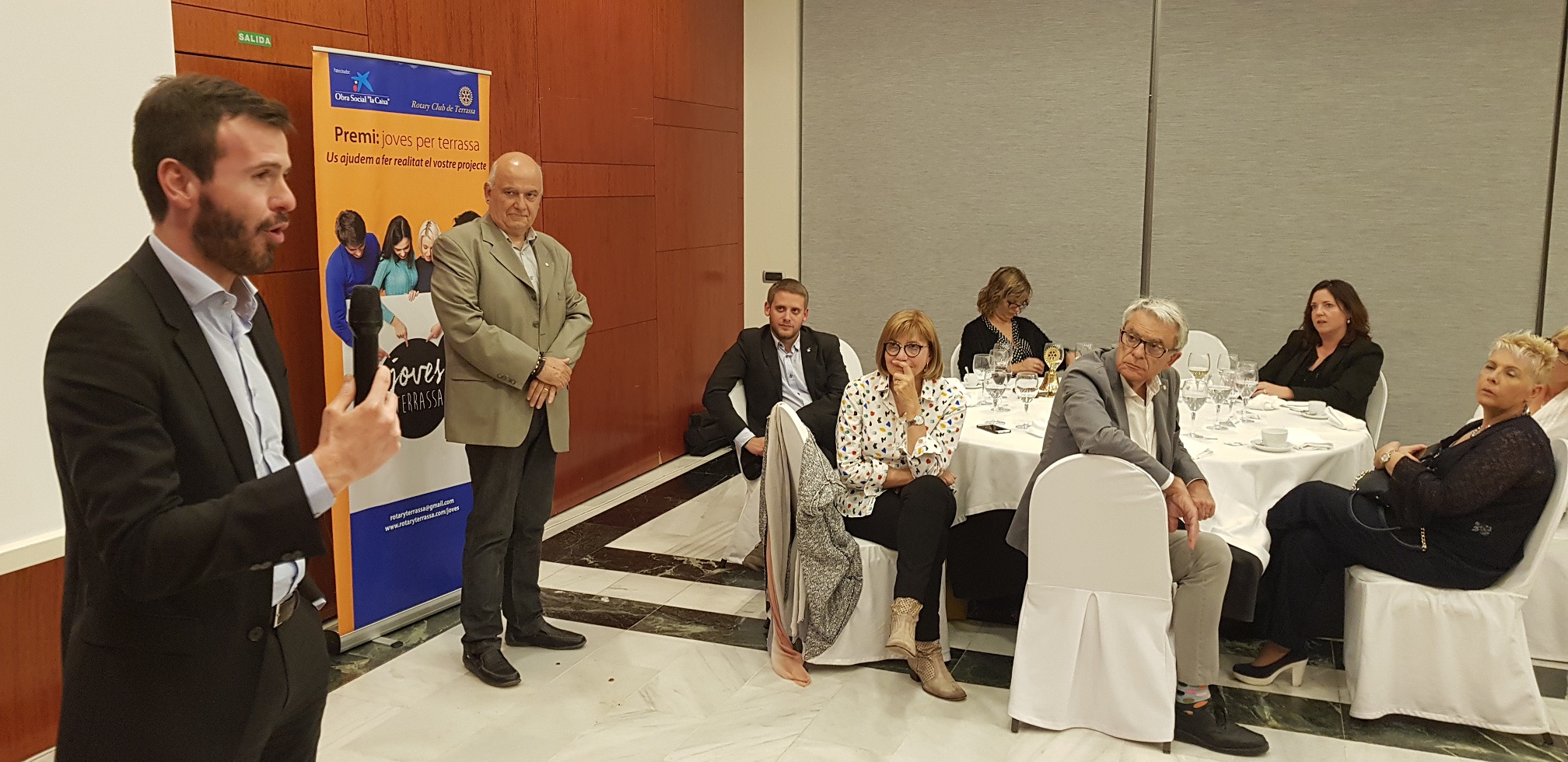 A continuació el President del Rotary Club de Terrassa, Domènec Ferràn, ha donat les gràcies al patrocini de La Obra Social La Caixa i ha “felicitat als guanyadors encoratjant-los a que no defalleixin en la seva tasca altruista i a totes les entitats que aquest any s’han presentat al Premi que hi segueixin confiant i es presentin amb nous projectes en la propera edició”.