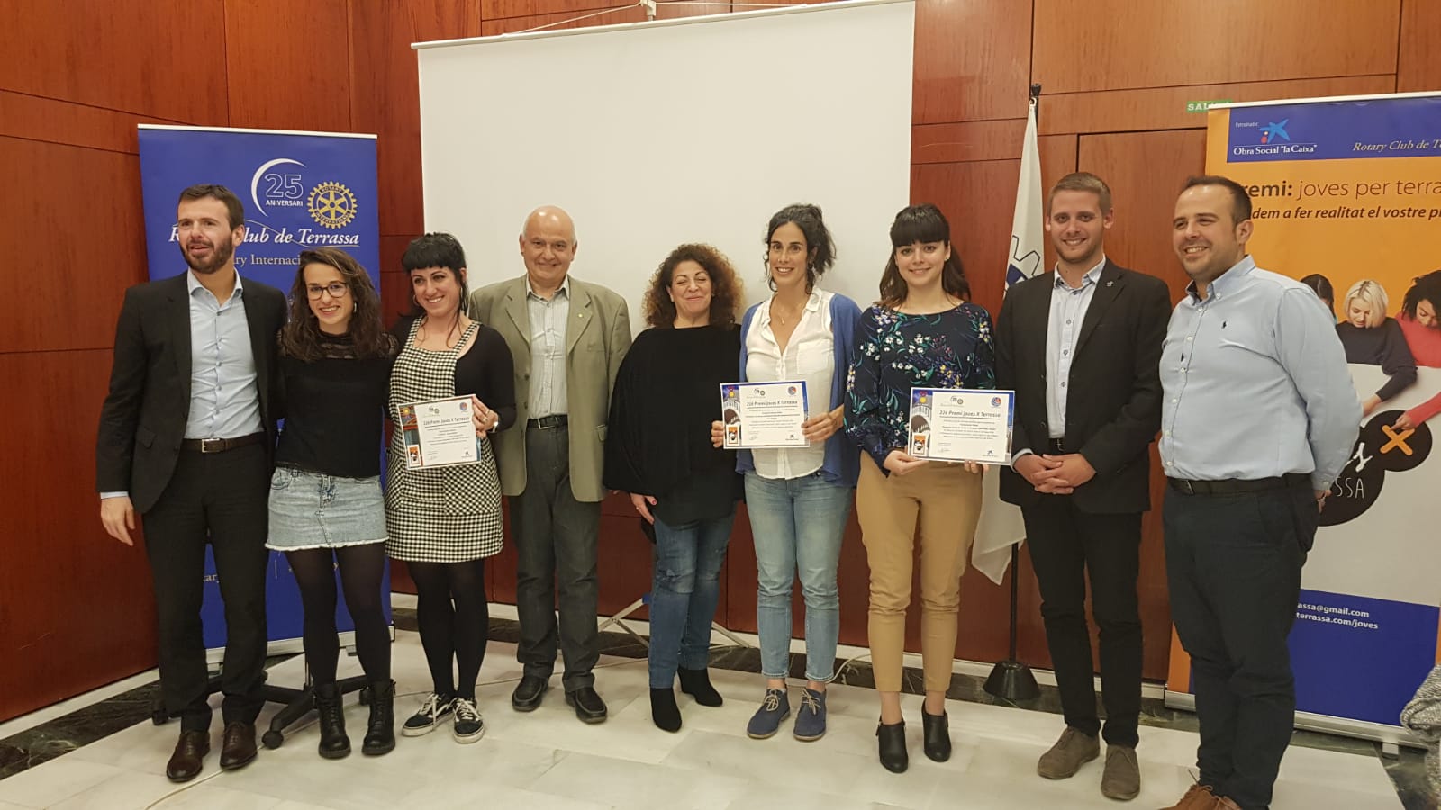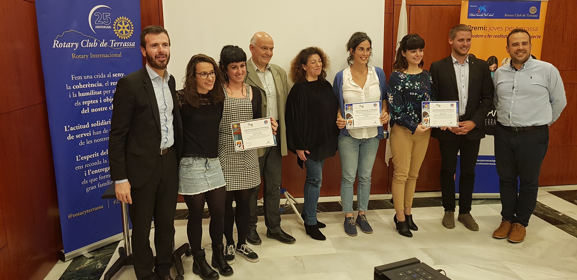 A continuació en Santi Rius, com a secretari del Club, ha llegit l’acta de concessió del 22è Premi Joves X Terrassa 2019 proclamant els premiats als qui han sigut lliurats els diplomes acreditatius per part del president del Rotary Terrassa, el representant de la Obra Social La Caixa i el representant del Ajuntament de Terrassa.