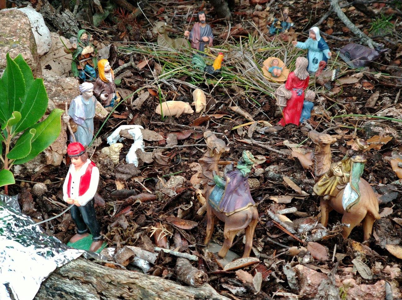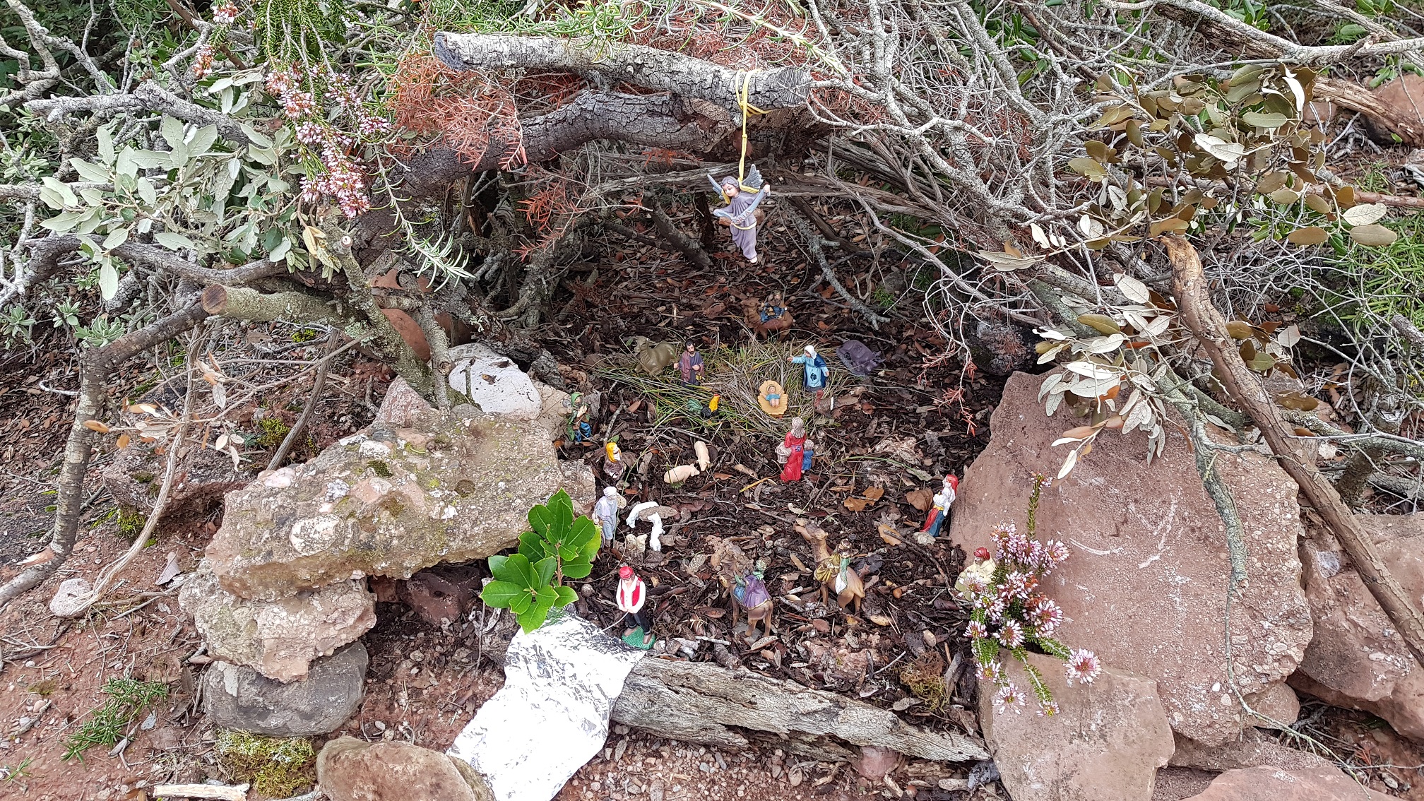 Destaquem que en la seva construcció només emprem materials dels rodals i alguna branca, sense fer malbé cap planta (les branques utilitzades són de les que creixen als vorals del camí i encapçar-les ajude a fer més practicable el camí a la font de la Portella que resta malmesa per culpa d’una caiguda de roques que es va produir l’any passat. Al costat del pessebre hi hem deixat una llibreta perquè tots el que el visiteu hi pugueu deixar el vostre missatge.