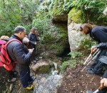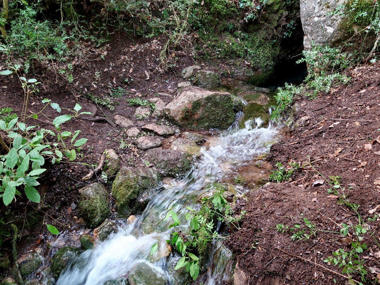 Hem seguit aquesta segona pitsa que puja cap a la masia de les Boades fins que hem trobat a mà dreta un trencall que baixa cap al llit d’una petita riera, hem seguit el camí que passa pel costat de la llera per la seva banda esquerra fins que gira a mà dreta travessant el torrent fins a trobar el forat de la Barbotera, una surgència intermitent que rajava abundantment.