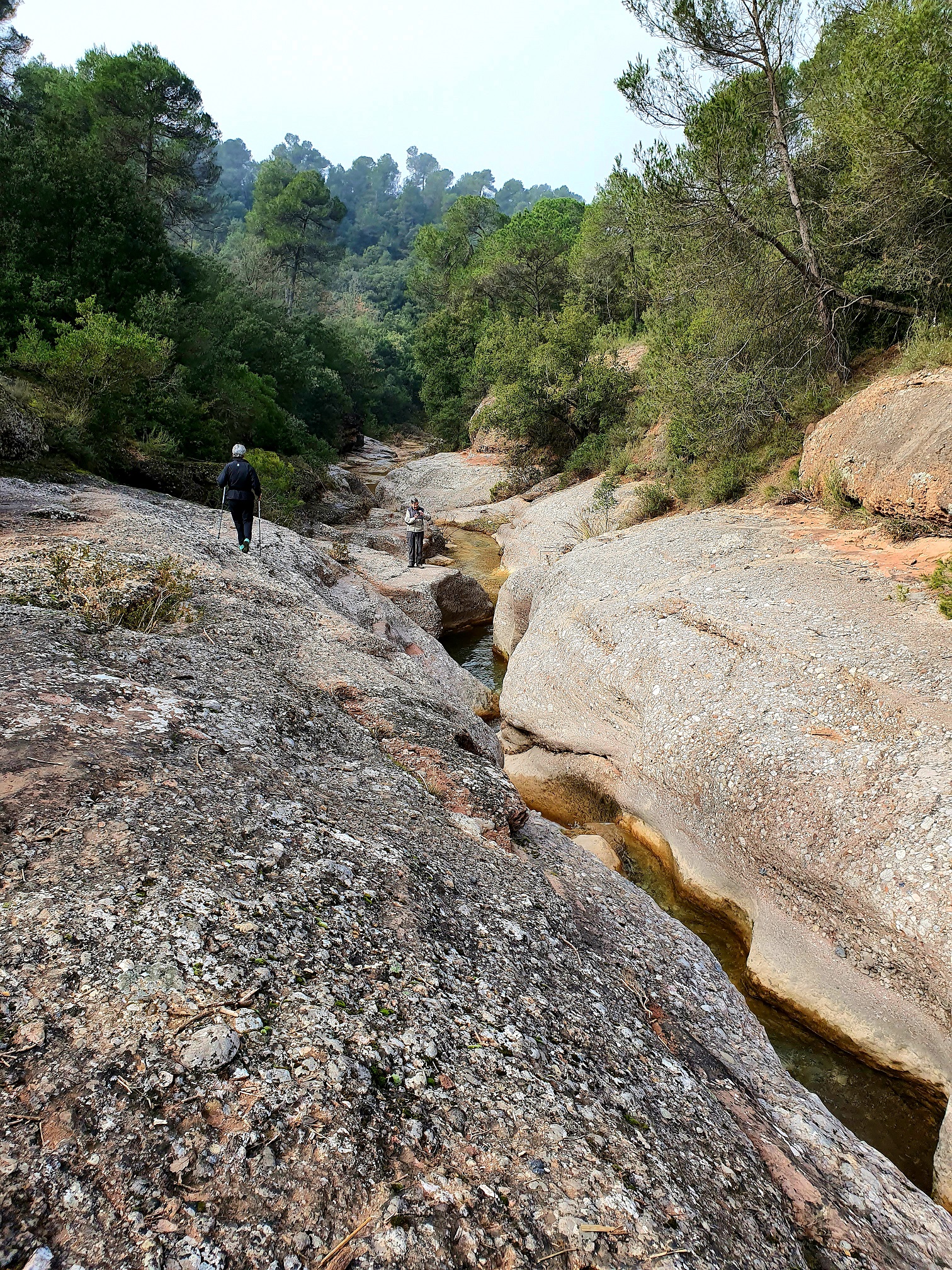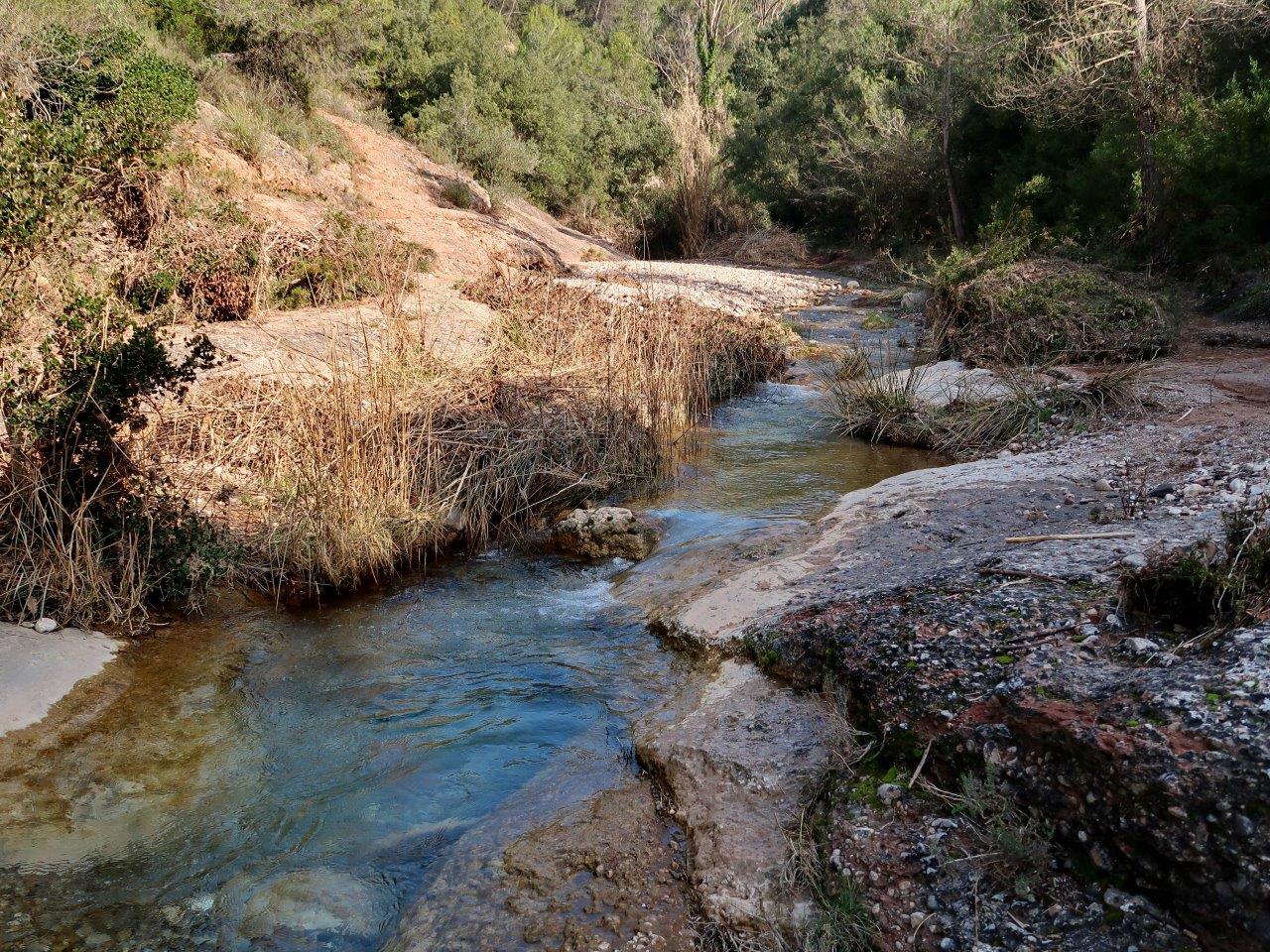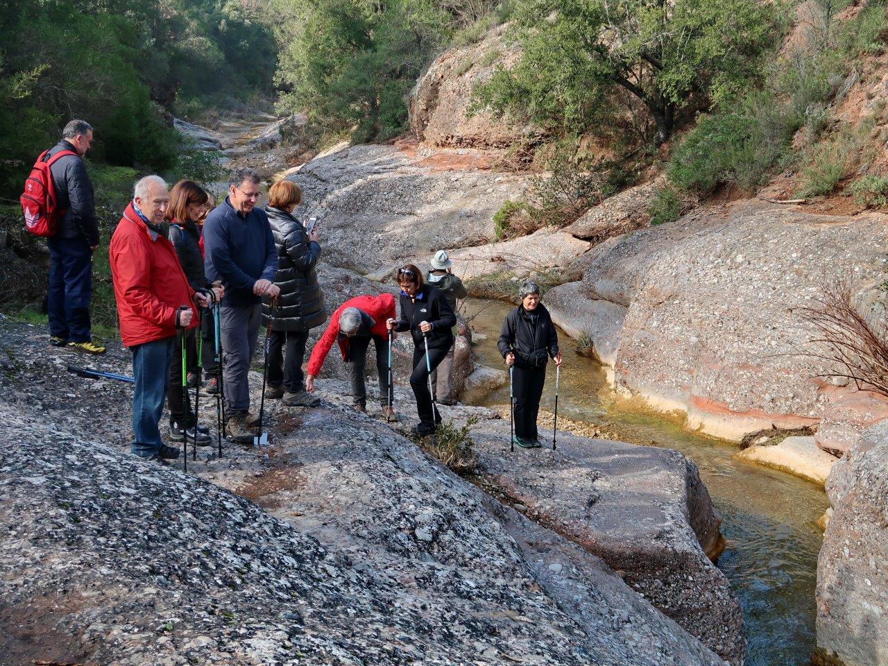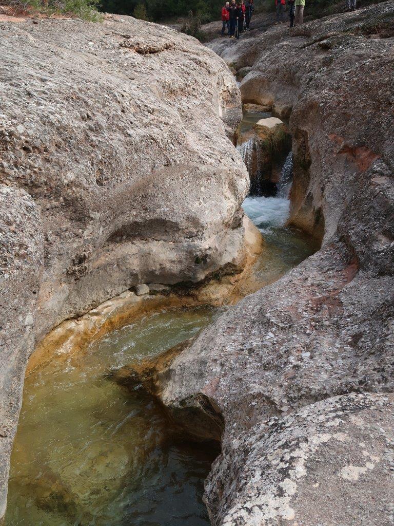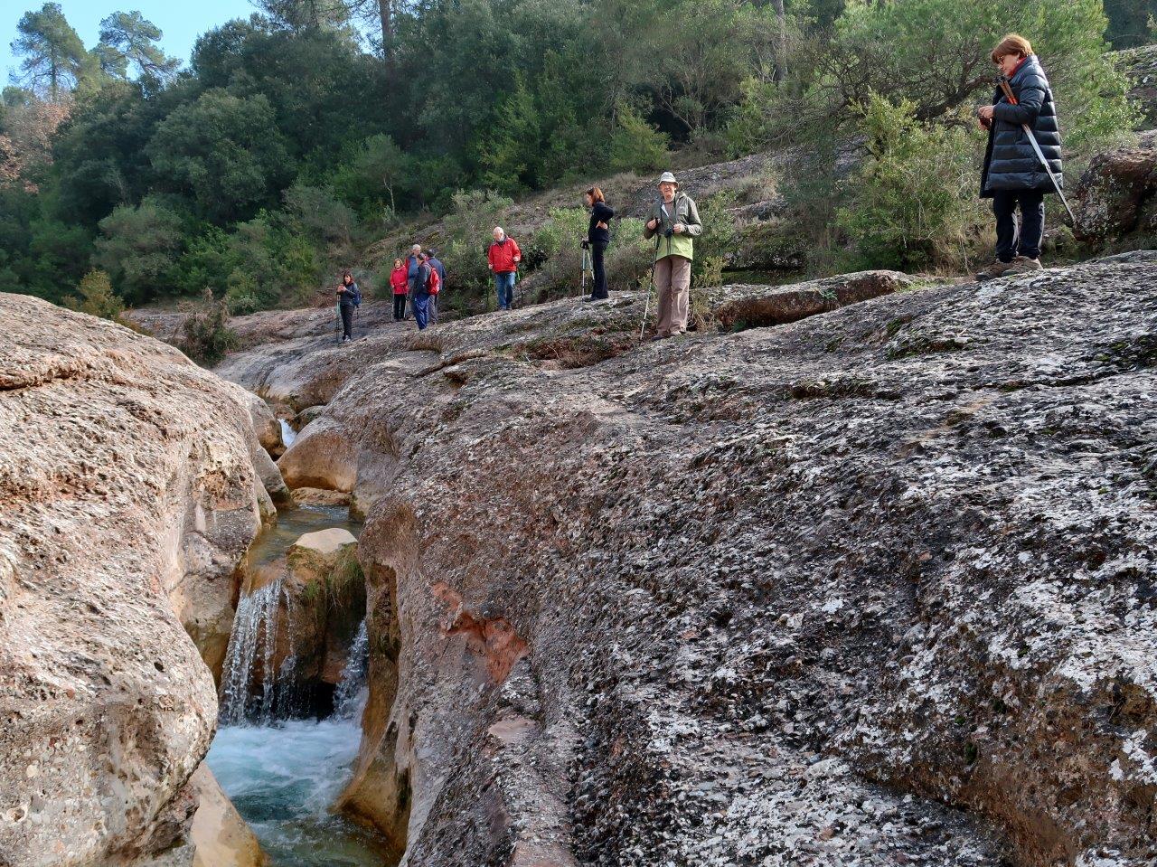 Un cop travesada de nou la riera de Rellinars hem agafat un petit camí a mà dreta que porta fins a un lloc on la riera passa pel mig d’un petit canyó de pedra amb curioses formes treballades per l’efecte de l’aigua.