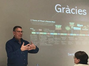 En el decurs de la xerrada ha explicat anècdotes i curiositats dels primers anys d’una empresa que desprès va resultar mítica, com PIXAR, i ha passat els primers curts d’animació fets amb ordinador de tot el món.