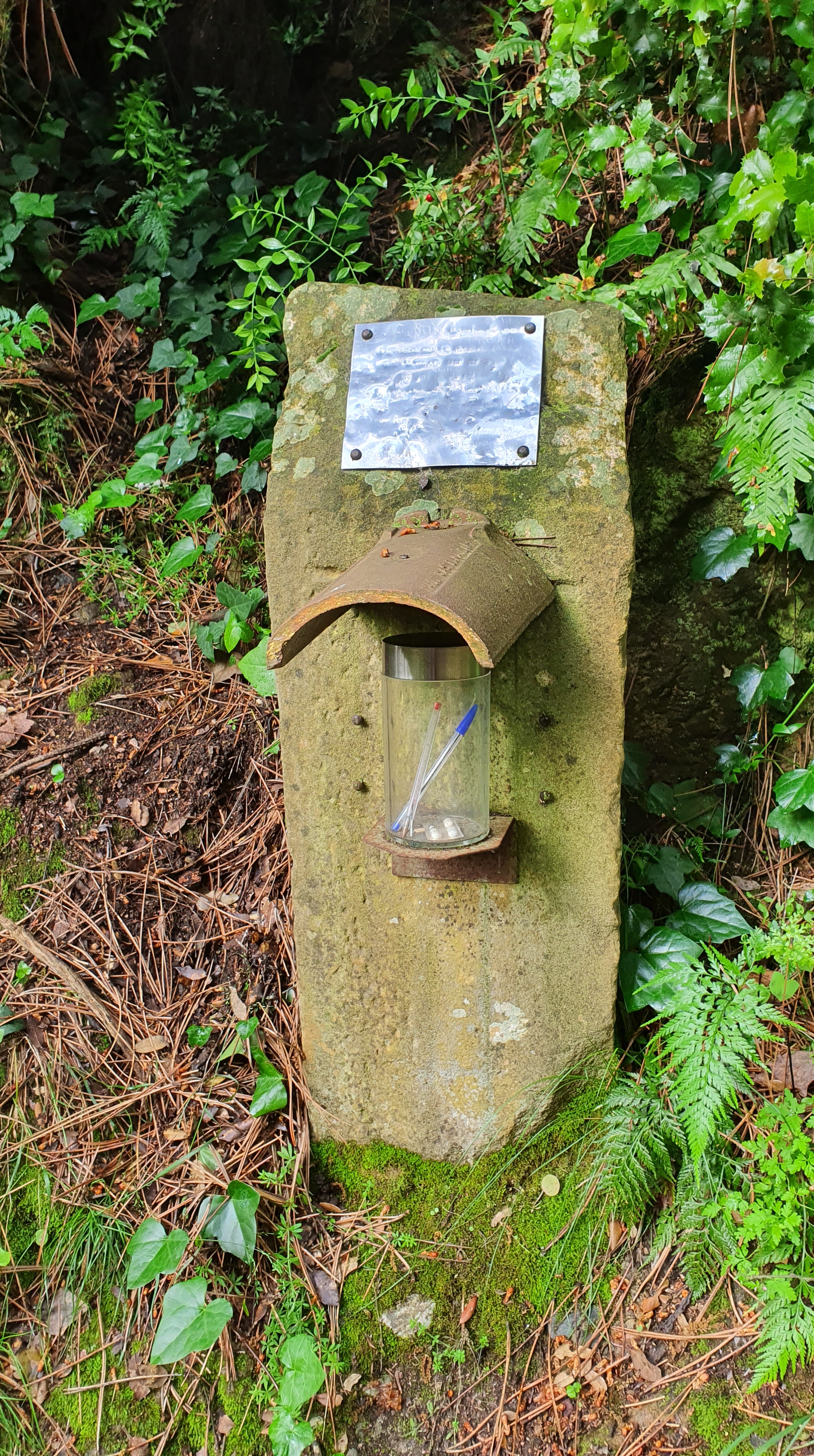 Només trobem un nou trencall a ma dreta que agafarem al tornar. Més endavant arribem al bonic racó de la font de la teula amb els seus dos brocs rajant. Al pla de la font hi ha una placa amb una ampolla on es pot deixar algun missatge protegida per una teula.