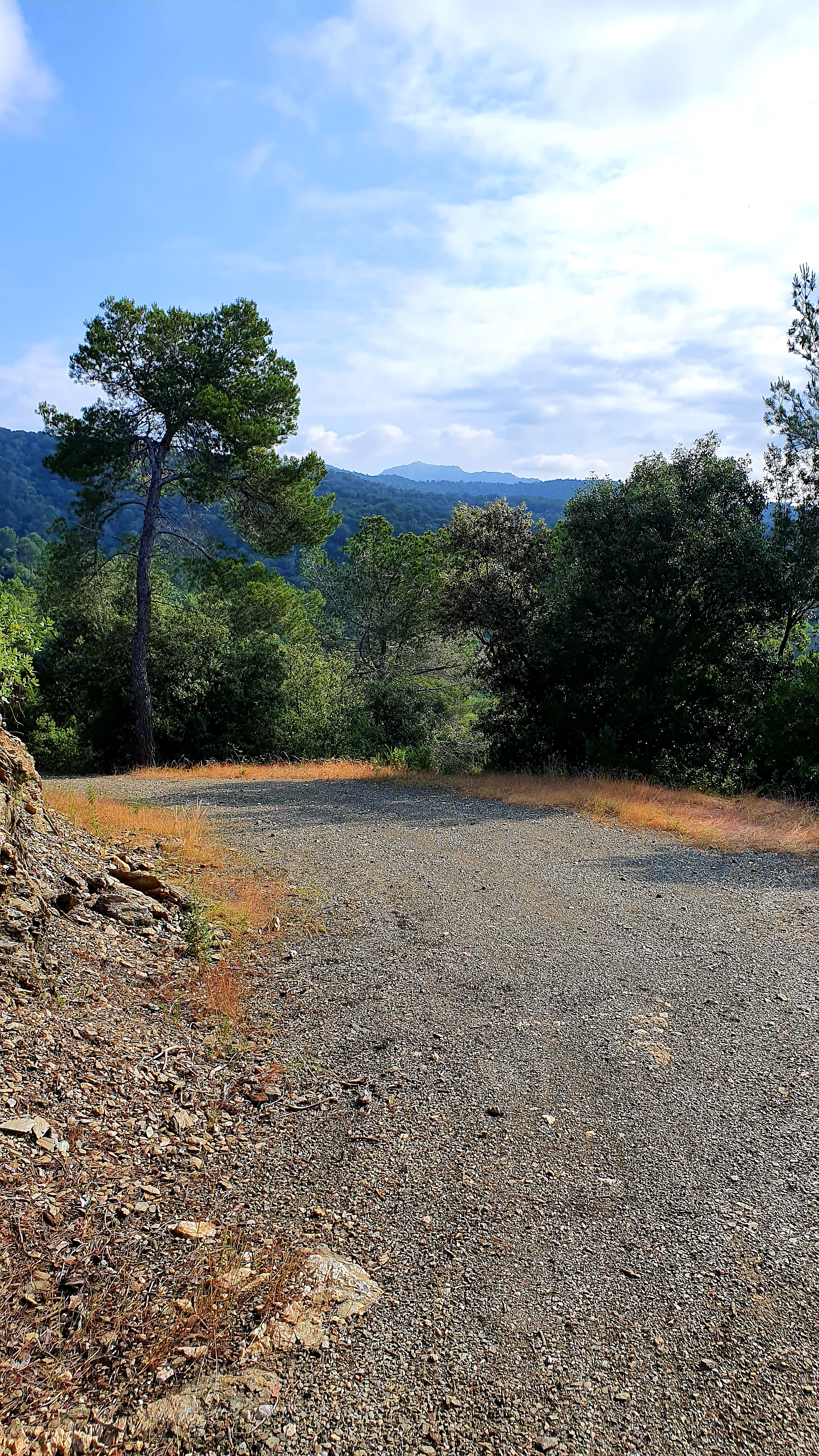 Més endavant agafem un trencall a mà esquerra que puja fort i arriba a un encreuament amb un punt geodèsic i una sèrie de pistes amples. Hem agafat el de més a la dreta que va planer i desprès de veure la mola al fons hem observat a la dreta del camí unes alzines sureres.