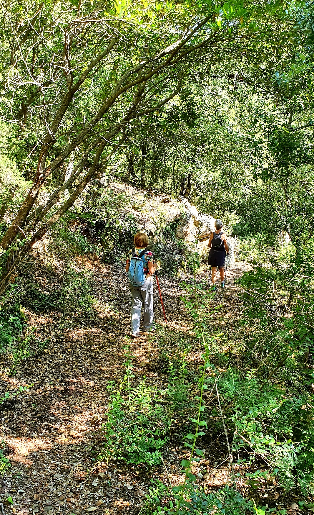 De nou hem seguit la pista fins que em trobat un camí a l’esquerra que puja cap a un camp que antigament havia estat cultivat. El camp el travessem per la seva dreta i més amunt agafem un trencall a ma dreta que s’endinsa en una zona ombrívola força bonica.