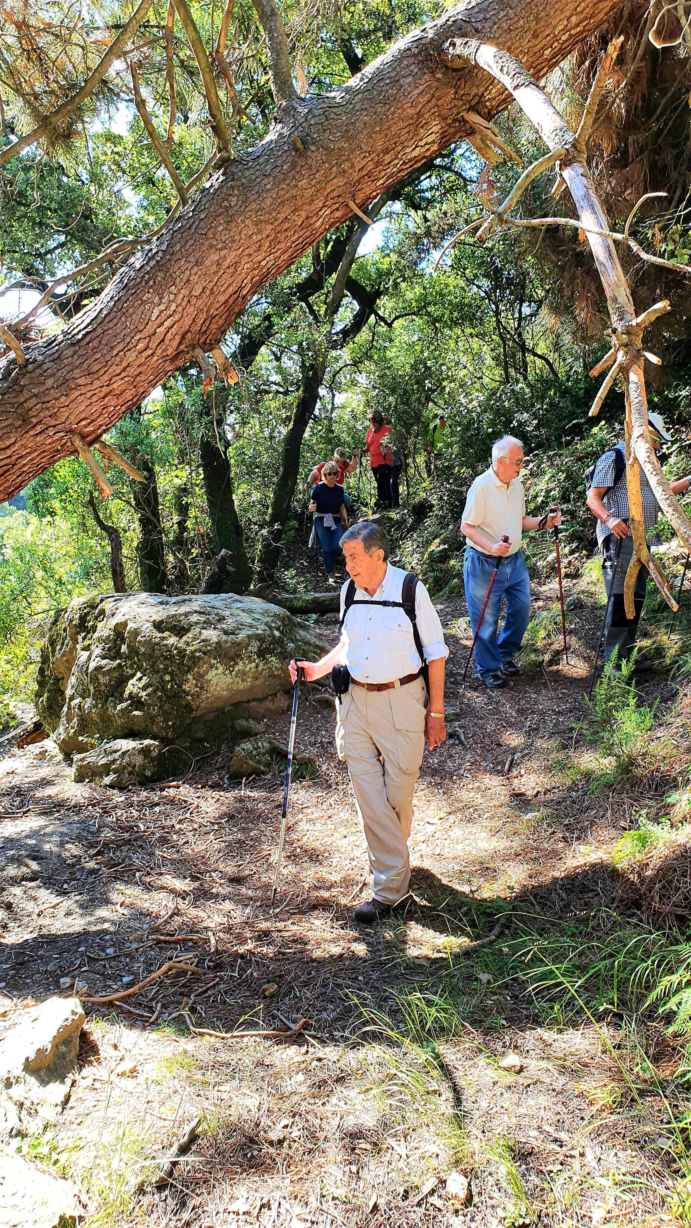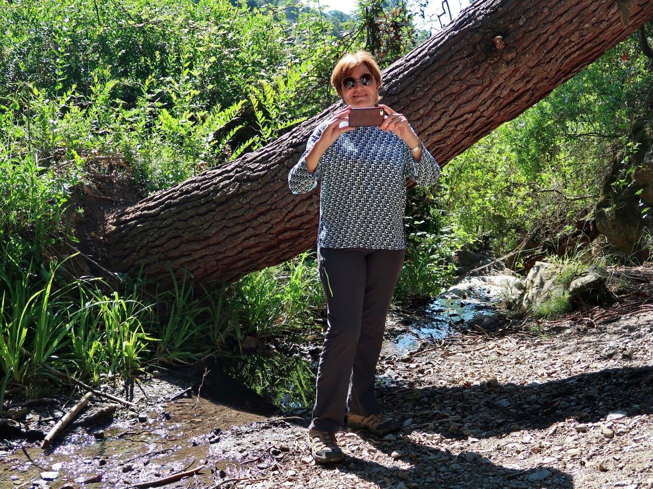 Refem el camí fina a tornar a la llera de la riera de Gaià que ara seguim avall. Al trobar el camí que porta al cotxes l’hem deixat enrere i em baixat una estona més per la riera gaudint de l’aigua que portava. Més endavant trobem a l’esquerra una pista que puja. L’hem seguim fins que a mà dreta veiem un bosquet de pins net que hem remuntat fins al lloc on havíem deixat els cotxes.