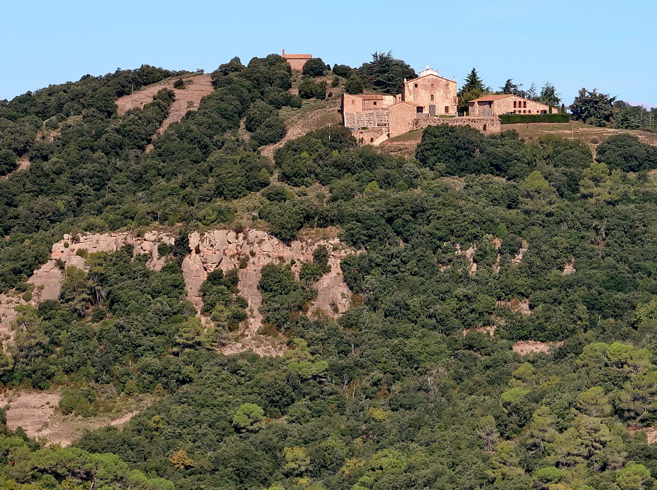 Un cop al costat de la tanca de can Bufí cal cercar un camí estret que puja sobtadament pèl mig del bosc. Nosaltres l’hem seguit fins que es troba amb un de més ample que agafem en direcció a la nostra esquerra. En aquest punt la pujada és més suau fins que poc a poc es torna a enfilar de valent. La darrera part de la pujada és forta fins que hem arribat a la carena.