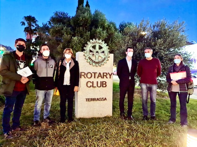 En la fotografia del lliurament del 2n i 3r premis, realitzada davant del monument del Rotary, de la Rambleta del Pare Alegre, hi podem veure als representants d’Església Unida, els de l’Esplai Guadalhorce, la presidenta del Rotary 2019-20 i el representant de la Fundació La Caixa així com altres membres de la Junta del Club.