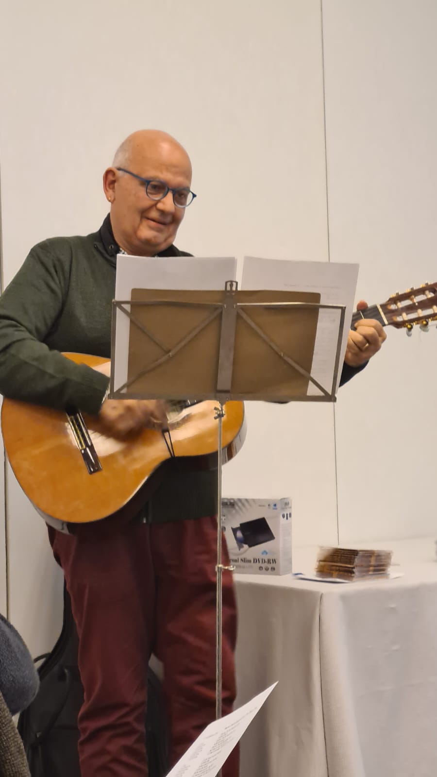 A continuació li cedeix el torn al Domènec Ferran que explica que cada dia, durant la pandèmia, s’inventava lletres de cançons que interpretava amb l’ukelele i penjava a les xarxes. Uns mesos després va decidir recollir cançons de la seva joventut per gravar el CD que avui presenta i coincidint amb les darreres paraules del Puy aprofita per interpretar la cançó “Al vent” d’en Raimon.