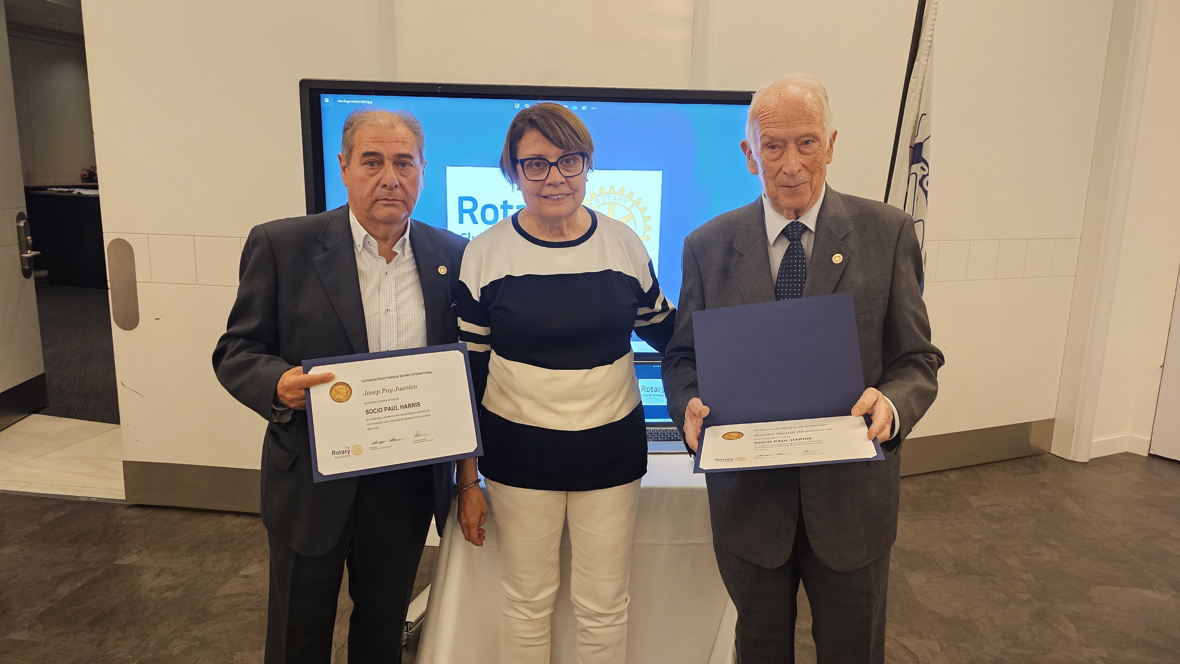 La Junta del Rotary Club de Terrassa, presidida per la Sra. Mariona Vigués ha decidit atorgar aquesta distinció a dos socis del club que han estat presidents del Club en dues etapes: en Jaume Suana i en Josep Puy.