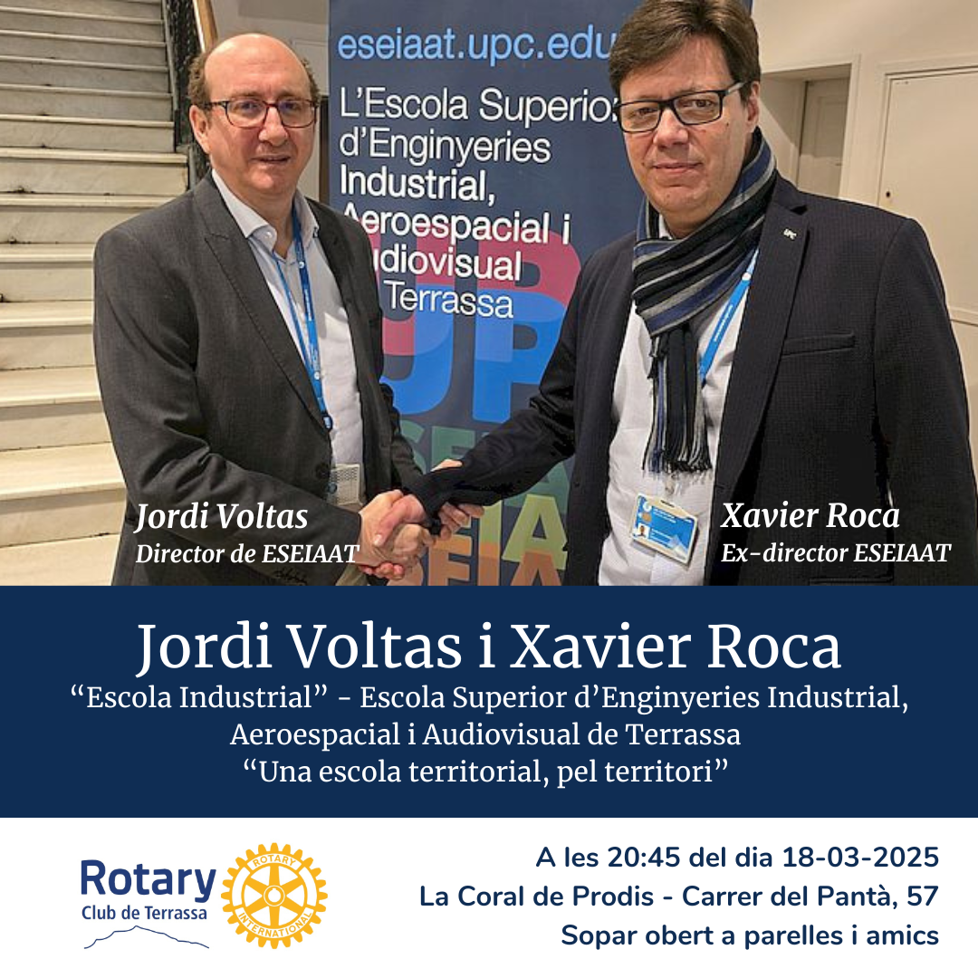 La xerrada tindrà lloc al local del Rotary Club de Terrassa al carrer Pantà, 57 (la Coral de Prodis) a les 21:00
