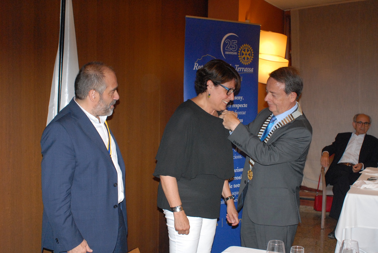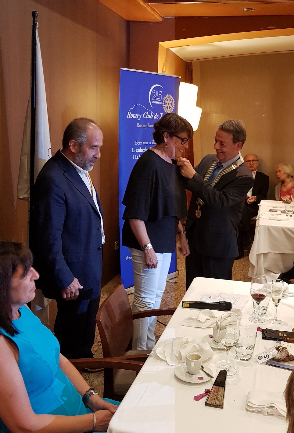 També es va procedir a la imposició del pin rotari als dos nous socis del Club: a la Mariona Vigués i al Ramon Comellas, mentre l’acte era conduit per la macera del club, la Mireia Serra.