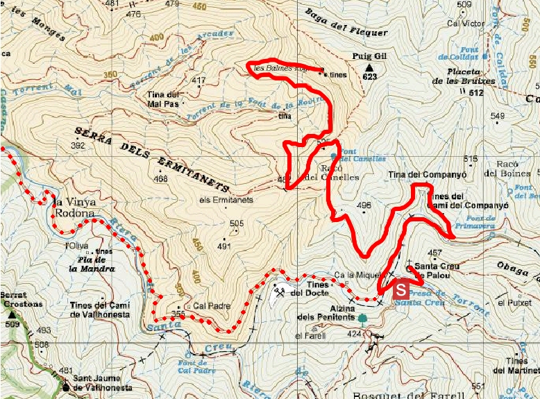 4.- (18 de desembre) BALMES ROGES.- Pont de Vilomara.- Riera de Santa Creu de Palou.- Camí del Companyó.- Font de Canelles.- Balmes Roges.- Santa Creu de Palou.- Pont de Vilomara. Link excursió