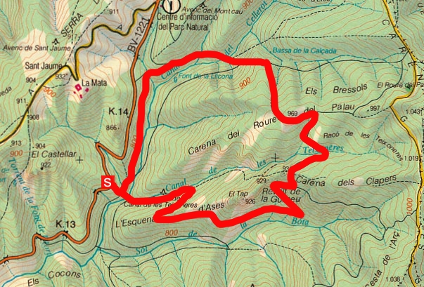 3.- (13 de novembre) SOT DE LA BOTA.- Revolt del Roure Escurçoner .-Canal de les Teixoneres .- Revolt de la Guineu .- Carena dels Clapers .- Carena del Roure del Palau .- Torrent del Cellerot .- Roure Escurçoner Link excursió
