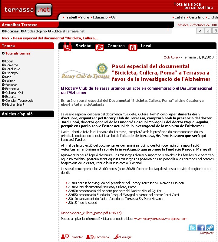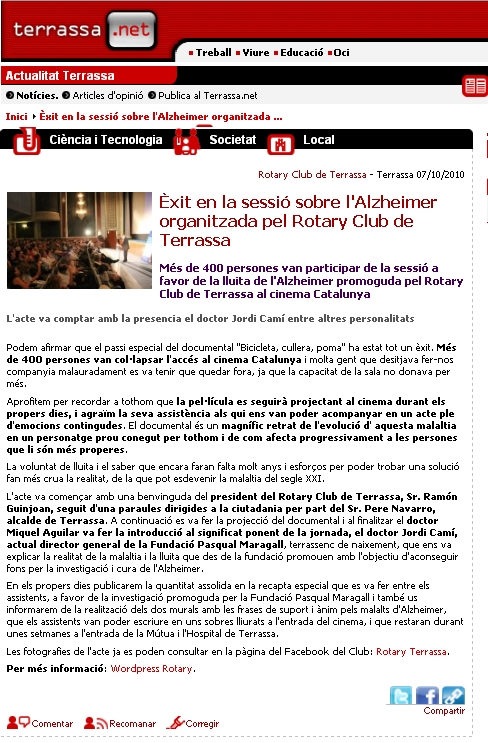 En aquest apartat us mostrarem els articles apareguts en la premsa tradicional i digital, relatius a les activitats del nostre Club 2010-11: