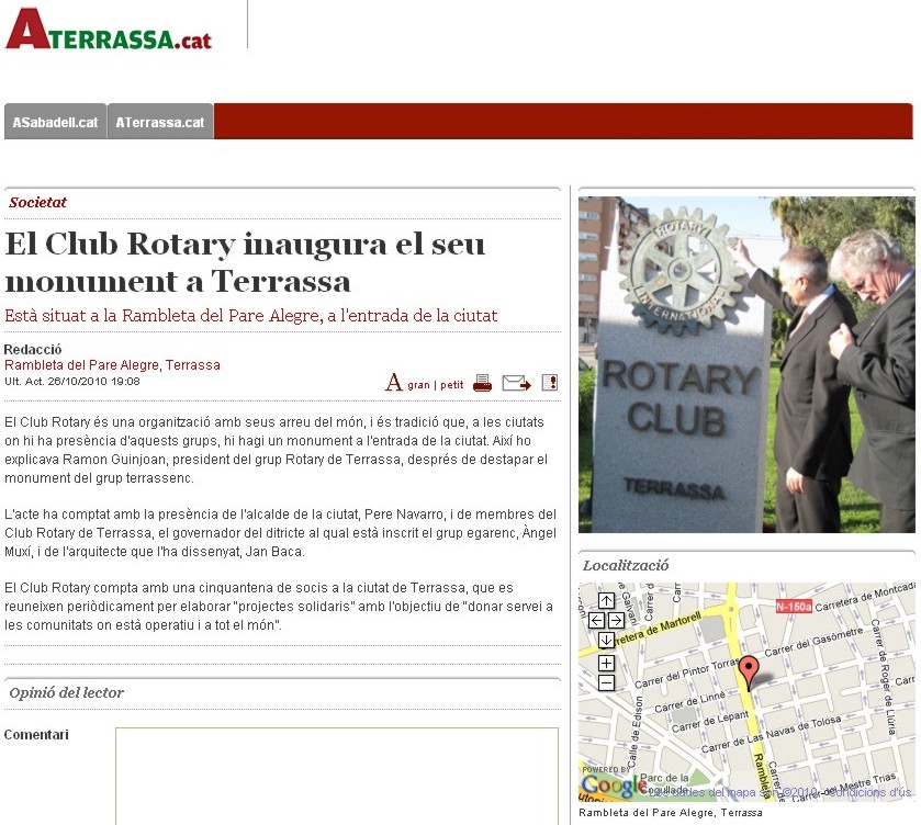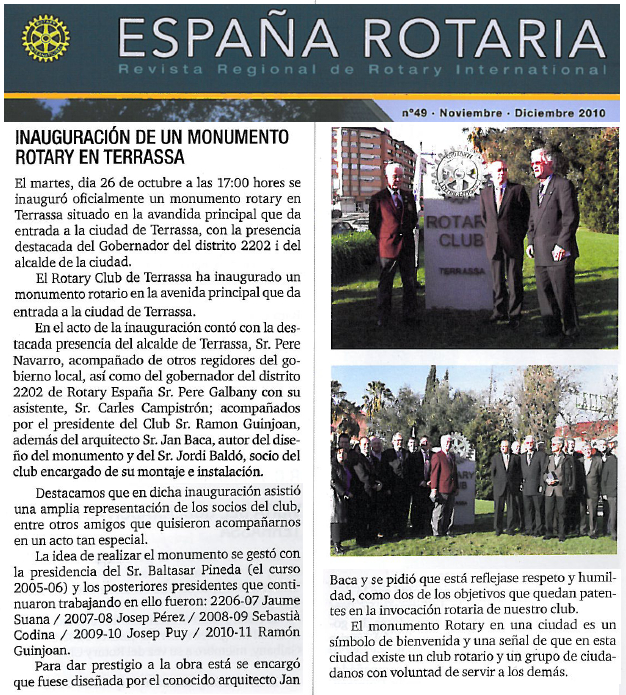 Inauguració Monument Rotary Terrassa (octubre 2010)