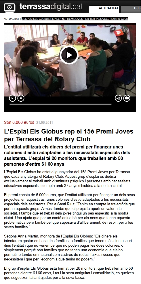 Vídeo: Lliurament Premi Joves per Terrassa 2011