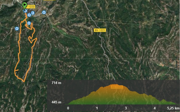 Ruta: Urbanització de la Creu – Camí Romeu – Hostal de la Creu – Camí de Coll de Cabra – Coll de Cabra – Cul de la Portadora – Coll de les Bruixes – Font de la Reixa – El Bovet – El Palà – Urbanització de la Creu / Distancia: 7,3 Km / Desnivell: 225 m.