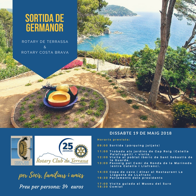 - 19 de maig: Sortida amb visites i dinar de germanor (Rotary Terrassa i Costa Brava)