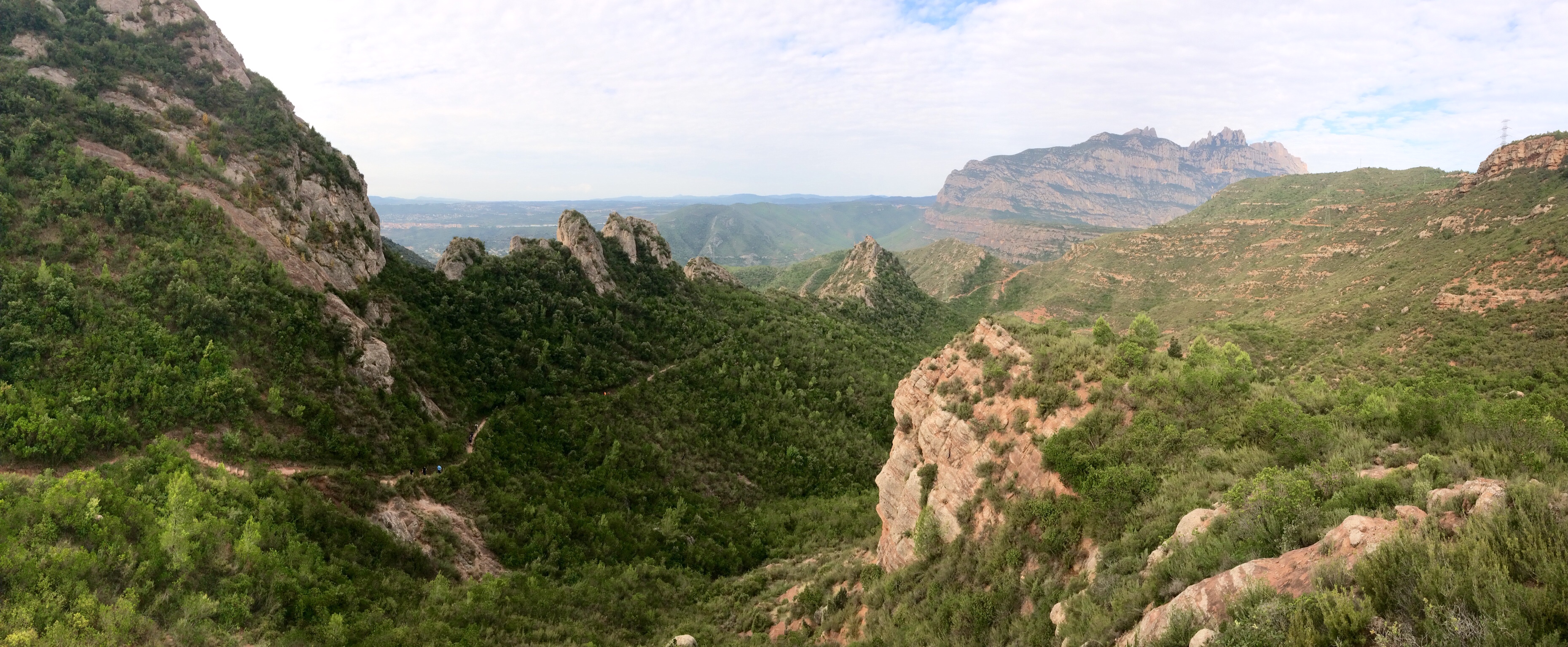 Ara el camí es fa planer i quan girem a l’esquerra, travessant el torrent de les Planes ens desviem a mà dreta per un caminet marcat amb padrons que inicia una forta pujada per un bosc de pins i alzines i que ens porta fins a Coll Prunera. Aquí agafem el camí que ens queda més a l’esquerra en pujada fins que arribem al peu d’un rocam amb unes magnifiques vistes de la Mata i el Montcau.