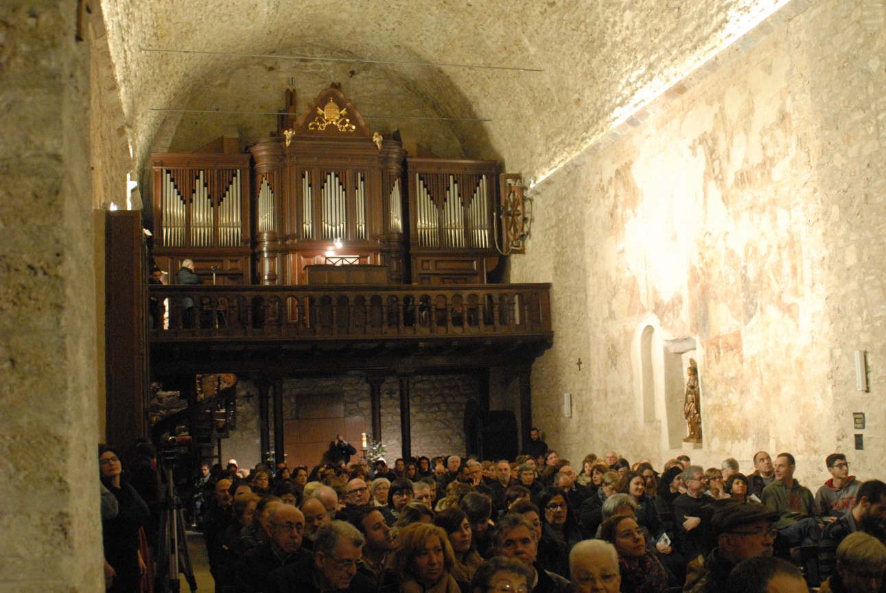 Una inèdita adaptació de dues sardanes terrassenques per part de l’organista Sr. Jordi Figueras i una espectacular interpretació dels components de Gospelins Terrassa han omplert completament el recinte de l’església de Sant Pere.