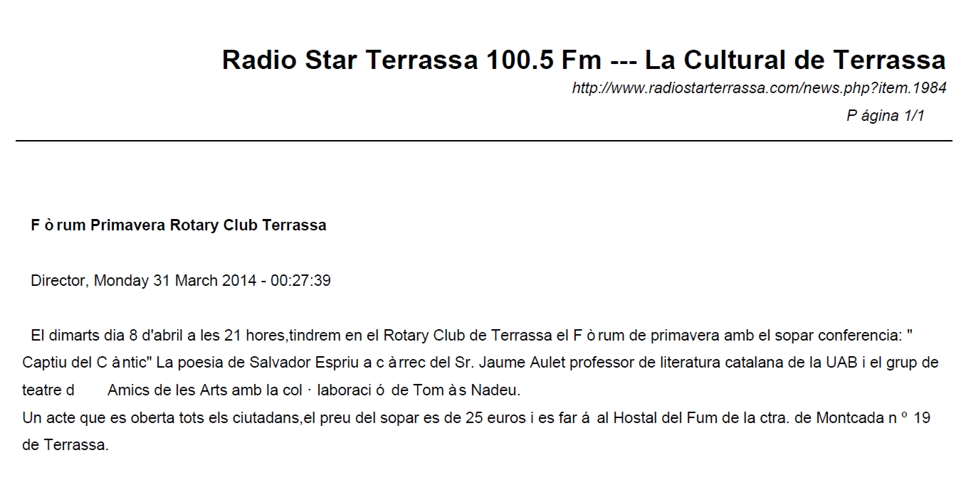 Fòrum Aulet sobre Espriu (abril 2014):