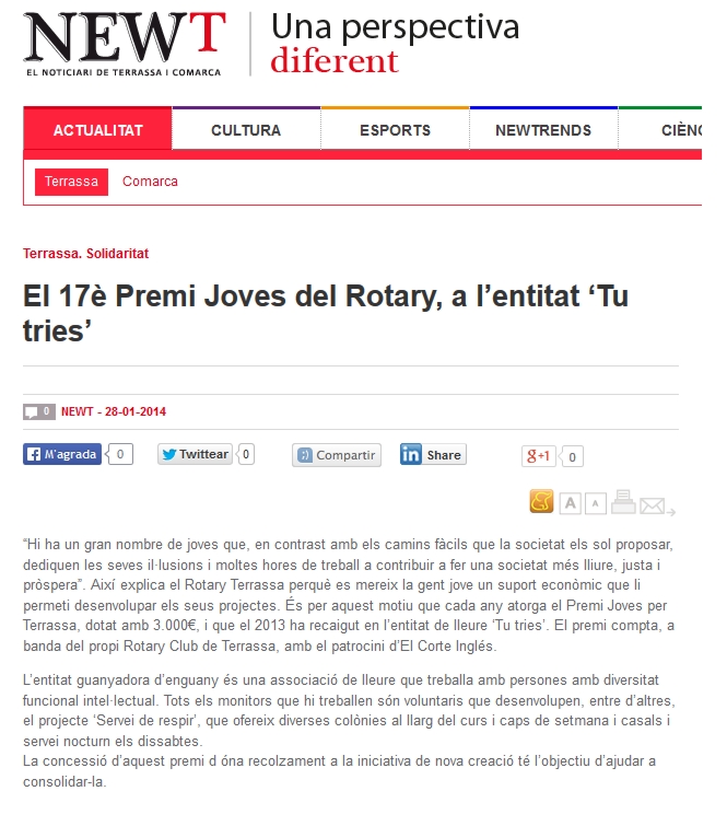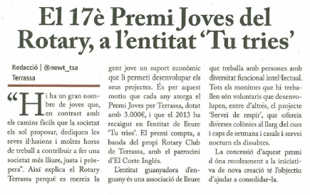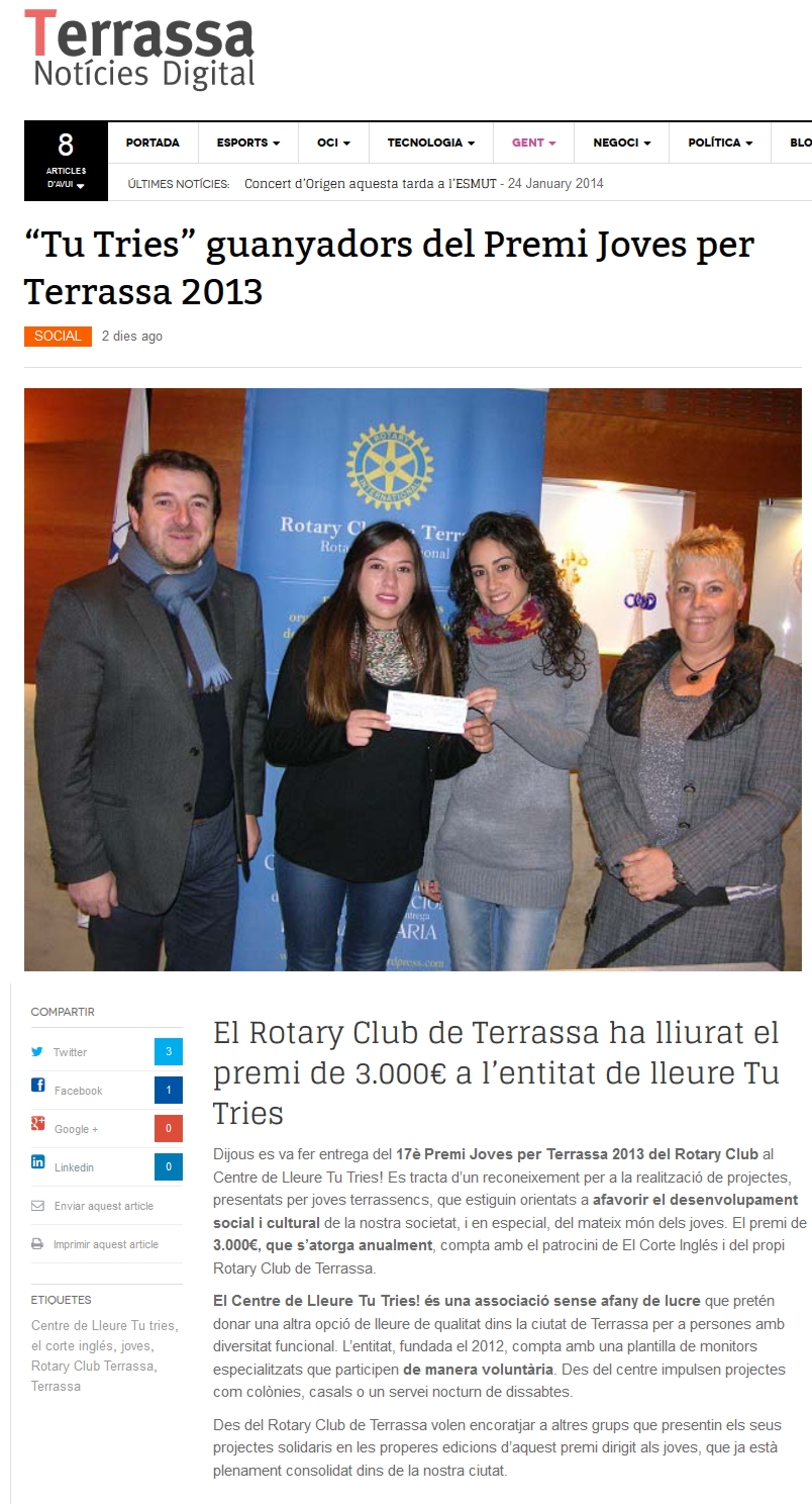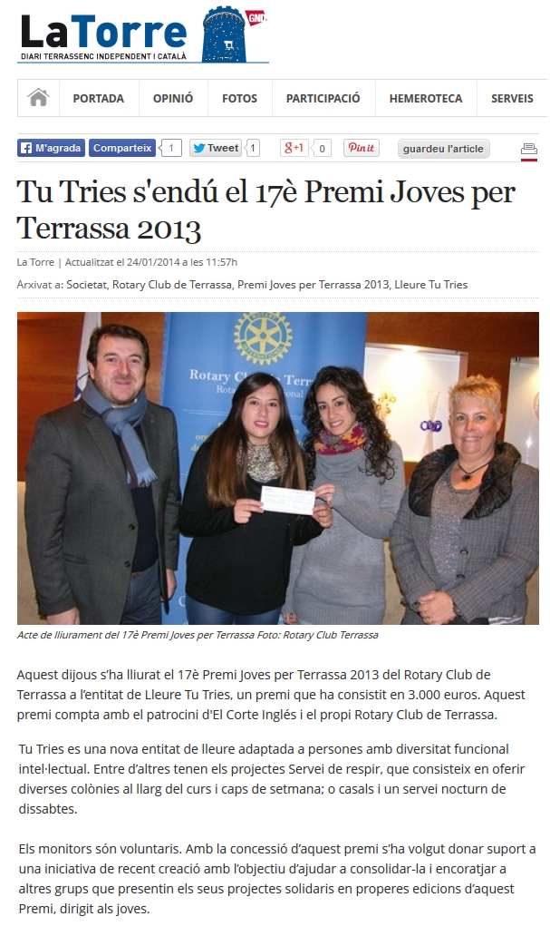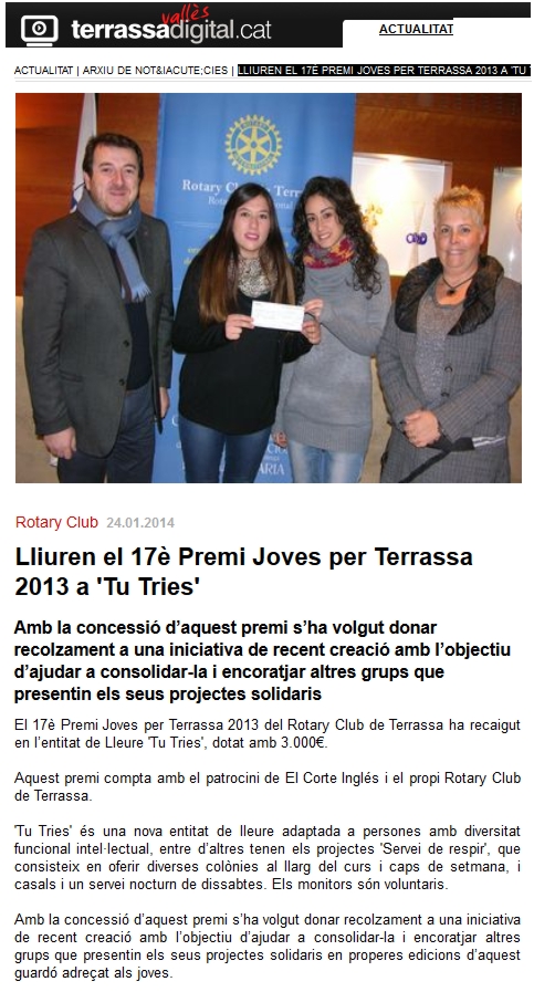 LLiurament Premi Joves per Terrassa a Tu Tries (gener 2014):