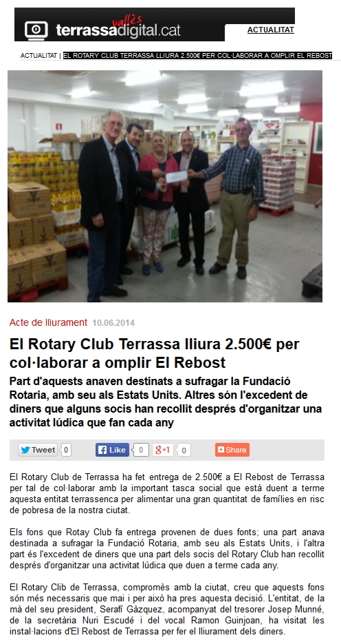 Lliurament 2500 € a El Rebost (juny 2014)