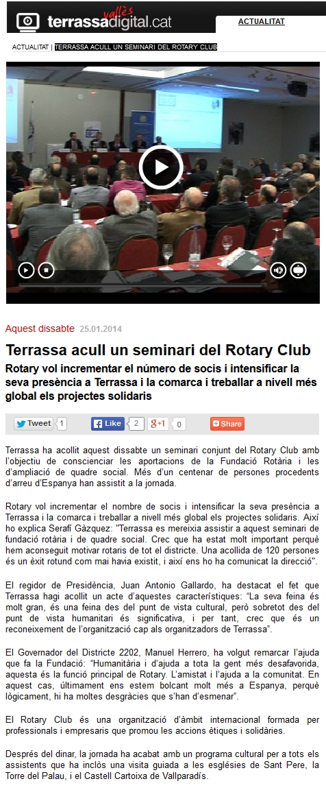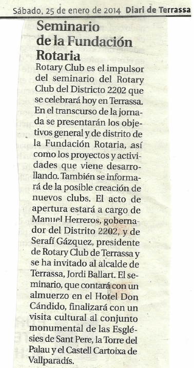 Seminari de formació del Districte 2202 a Terrassa (gener 2014):
