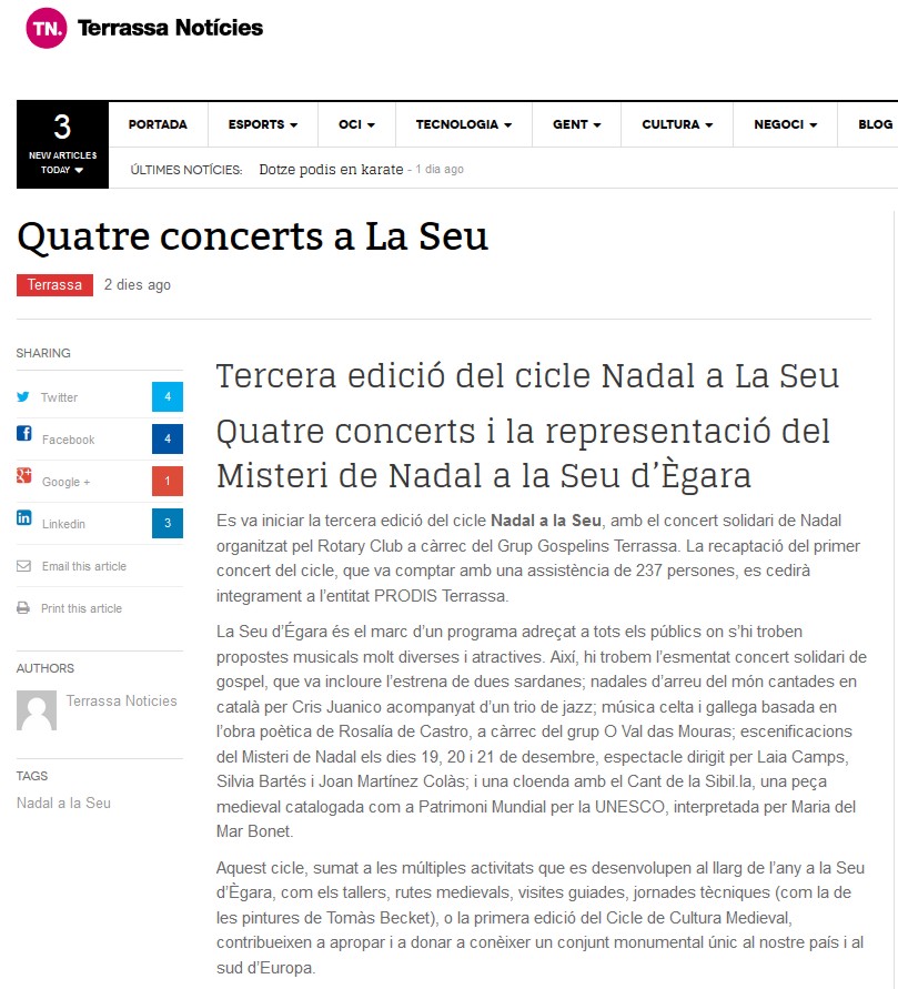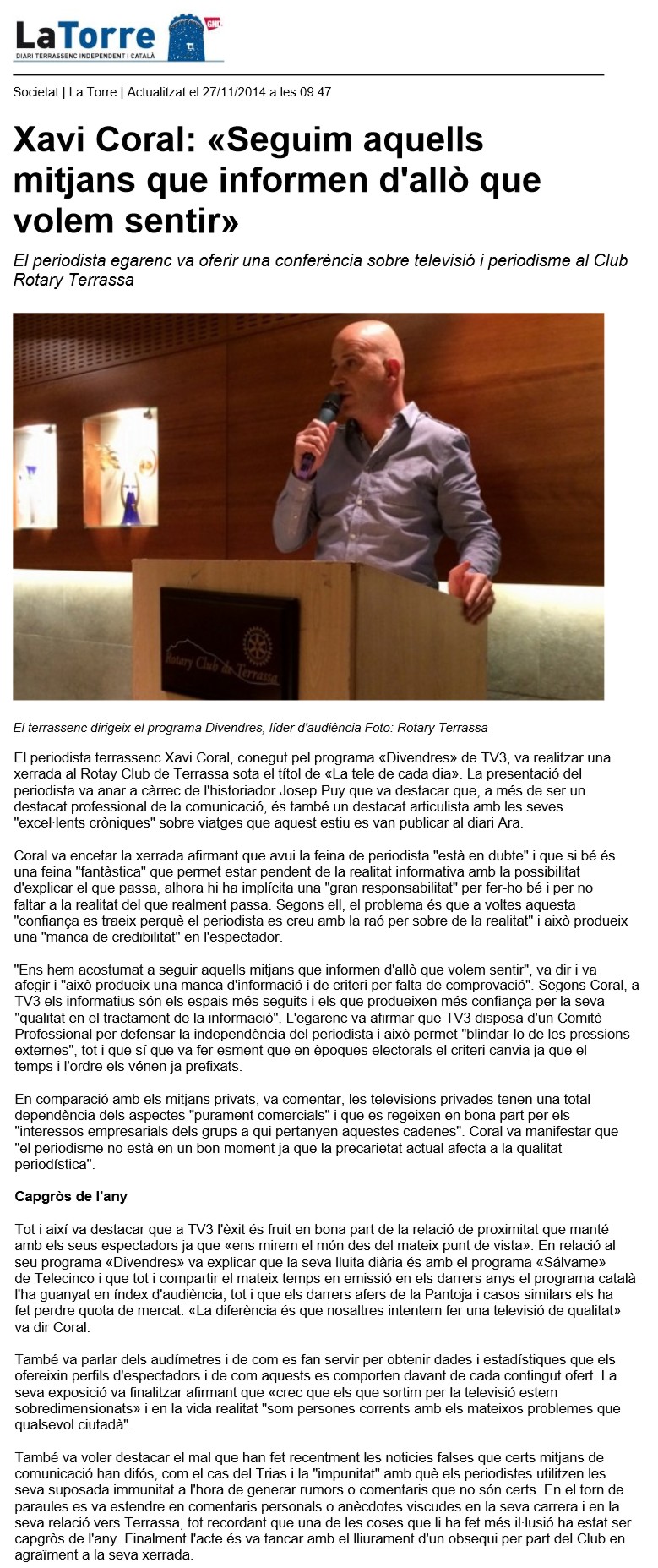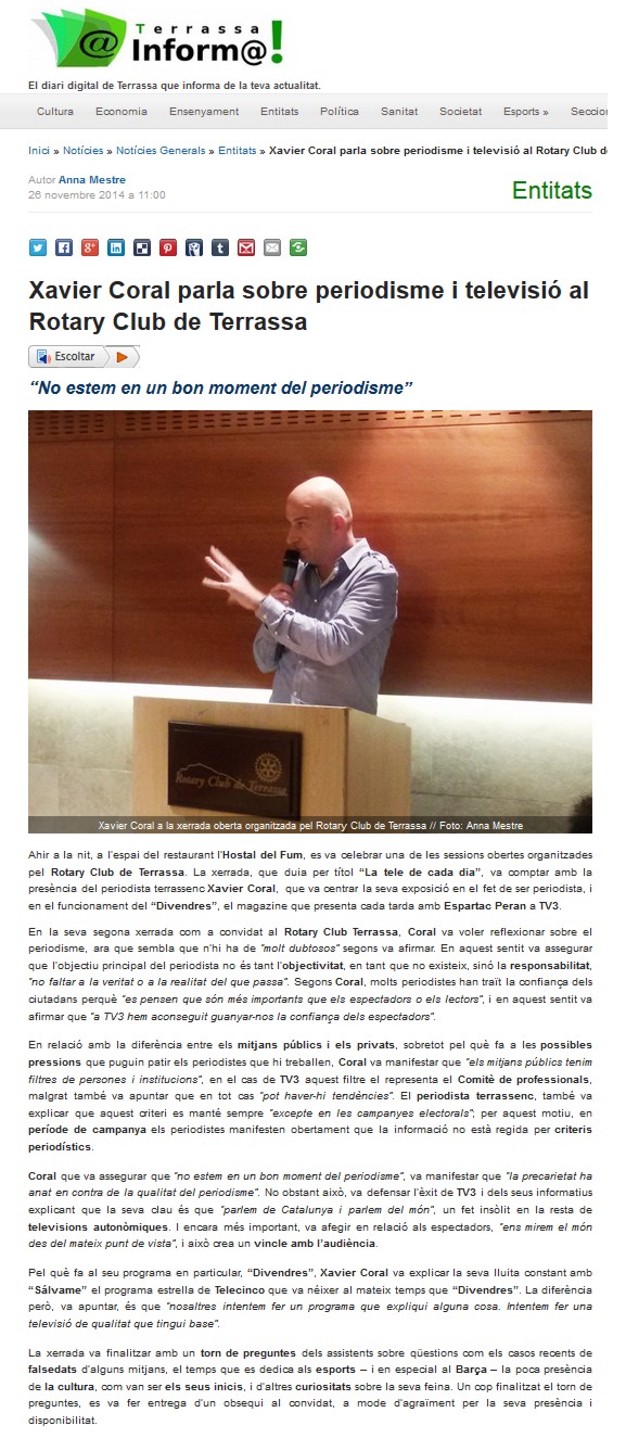 Vídeo Televisió de Terrassa: http://youtu.be/wEqSsnHEzXo