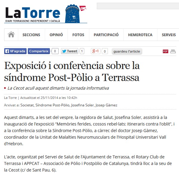 Exposició sobre la Pòlio (novembre-desembre 2014):