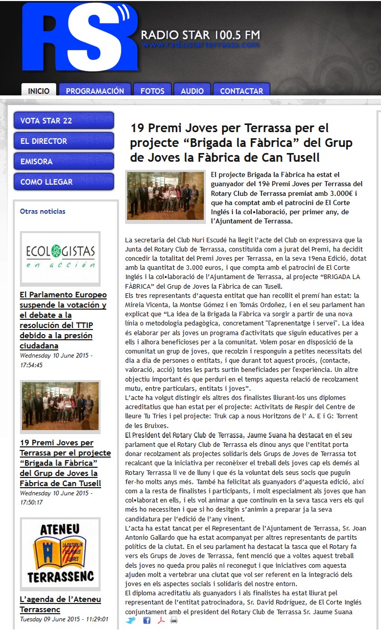 Guanyador Premi Joves per Terrassa (juny 2015):