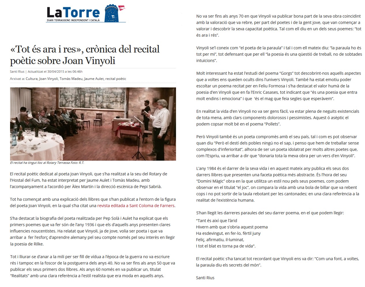 Vídeo Televisió de Terrassa: https://youtu.be/a01sqiDl9eg
